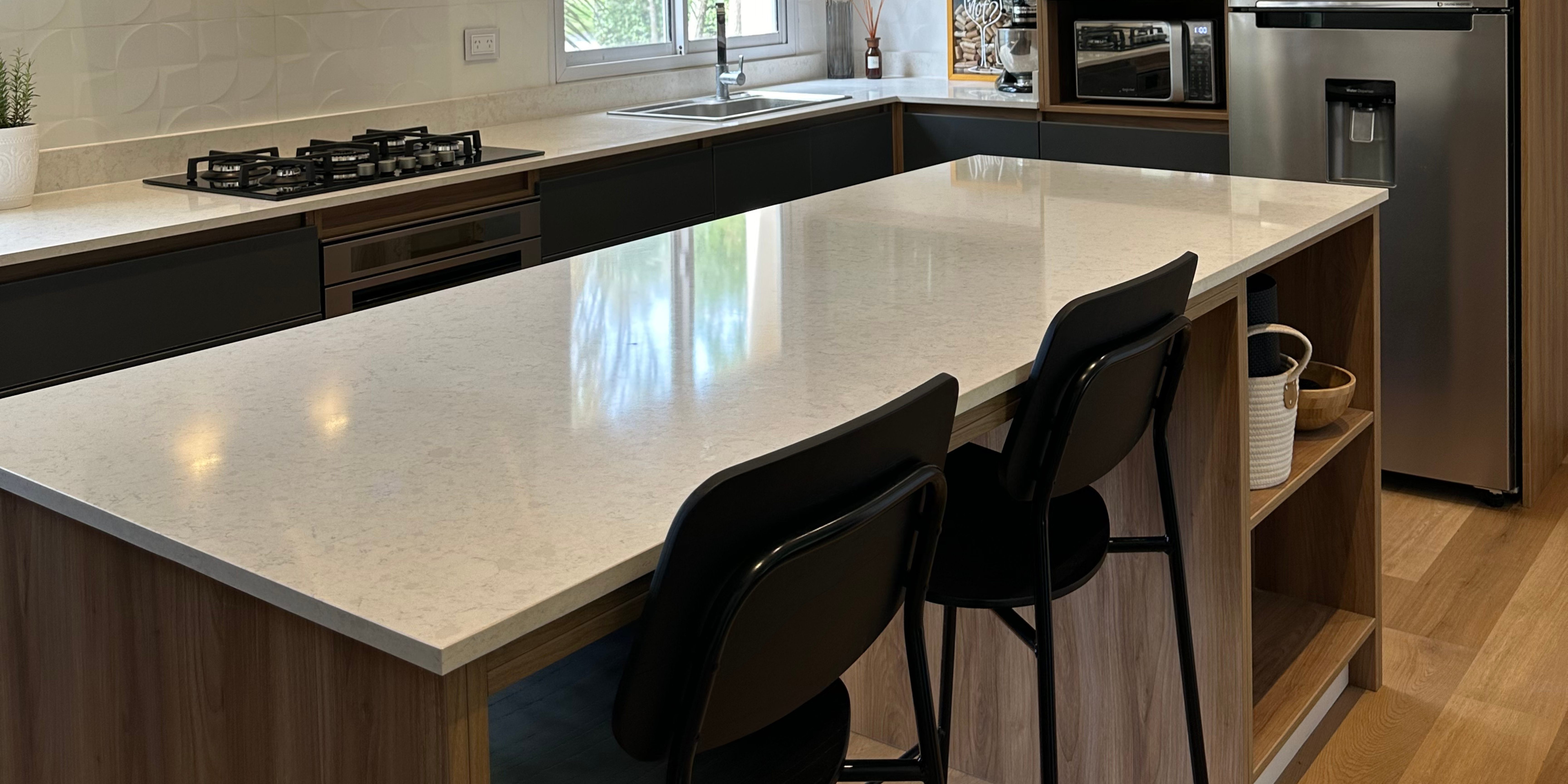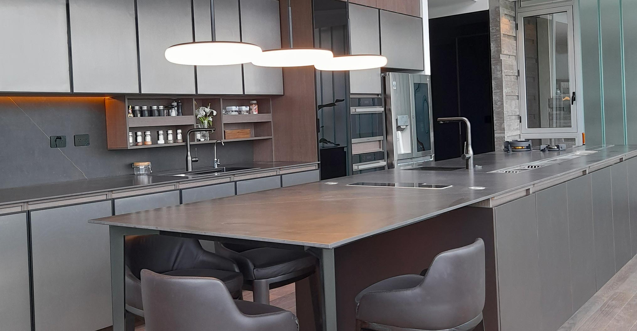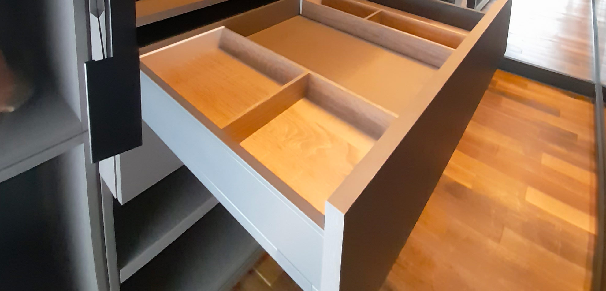 La organización inteligente es clave en esta nueva cocina. Los armarios cuentan con sistemas de almacenamiento personalizados que aprovechan al máximo cada centímetro de espacio, desde los estantes deslizantes hasta los compartimentos ocultos para pequeños electrodomésticos.